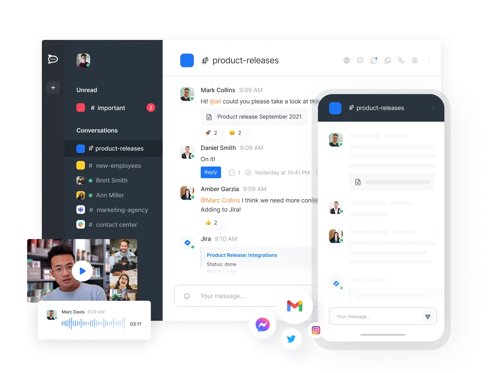 - Collaborate with your team members through real-time messaging